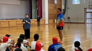 news 那覇市の与儀小学校にてキャリア教育講演会をしました。 那覇市の与儀小学校全校生徒向けに譜久里武コーチがキャリア教育講演会の講師として登壇しました。最後には子ども達の前で足が速くなる方法をしっかり教えていました。 2025.09.05 newsヘッドライン